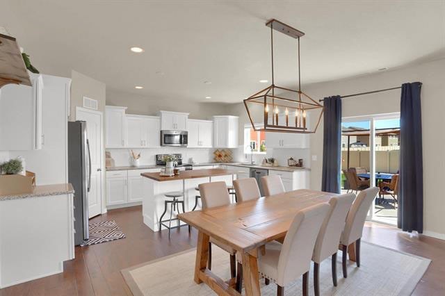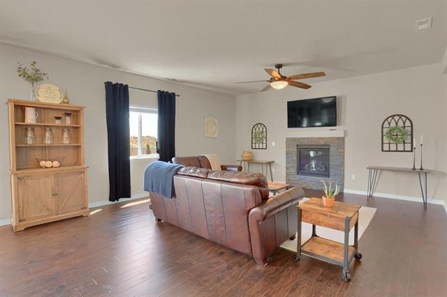 Upstairs boasts an oversized loft with incredible mountain views that can be used as a second living area, kids play room, or anything you can envision! Proceed to the spacious master retreat with 5-piece master bath and oversized walk-in closet, and both additional bedrooms feature walk-in closets. Upstairs laundry offers perfect, everyday convenience. This home is located on one of the largest lots in the neighborhood, and is a quick walk to the clubhouse, pool, workout facilities, soccer fields, playground, walking trails, and apple orchard. Corner lot, mountain views, extended outdoor patio, A/C for those toasty summer days.