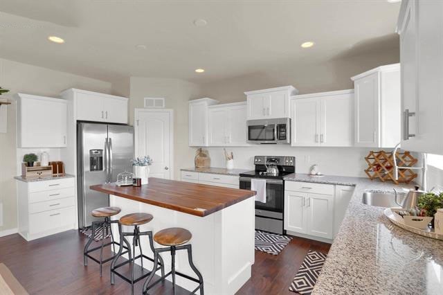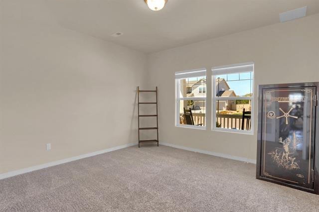 Welcome home to this highly upgraded, designer home in the very sought after master planned community, Ventana! Just 10 minutes to Fort Carson and 15 minutes to Peterson! Upon entry, you will find wood laminate throughout the entire main level, a stone-faced gas fireplace, open layout, designer kitchen with upgraded white soft close cabinets, stainless steal appliances, granite countertops, custom-built butcher block kitchen island, custom light fixtures, and a beautiful office behind French doors facing the front porch.